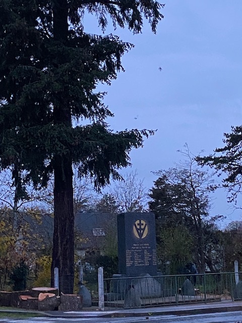 Que croyez -vous qu'il advienne ? En passant près du monument cet après- midi, j'ai constaté qu'un de ces magnifiques conifères était entrain d'être coupé et débité. En catimini ! Pour l'autre ce sera peut être pour demain ! Les deux plus magnifiques sujets du secteur risquent de disparaitre. Au moins pour l'un deux c'est fait. C'est sans doute une décision des adeptes du développement durable.