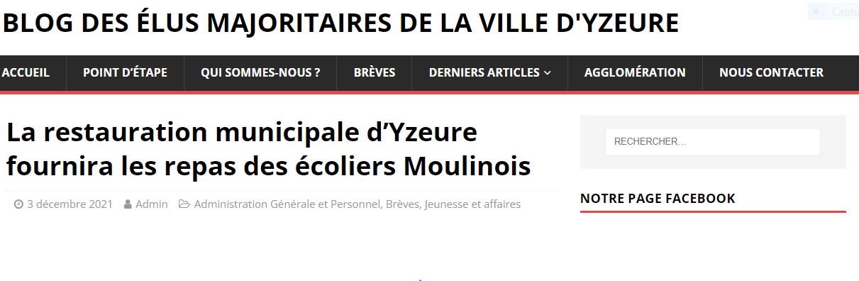 Sous cette politique de repli, sont en réalité cachées de mauvaises intentions pour le personnel et pour le service aux Yzeuriens.( à suivre ) Nous reviendrons après le conseil du 17 décembre sur la cuisine d'Yzeure .