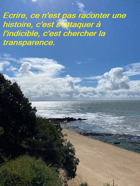 Ecrire, ce n'est pas raconter une histoire, c'est s'attaquer à l'indicible, c'est chercher la transparence.