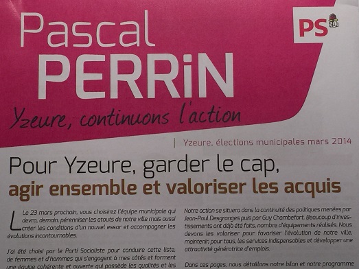 Pascal Perrin dans son document électoral écrivait :