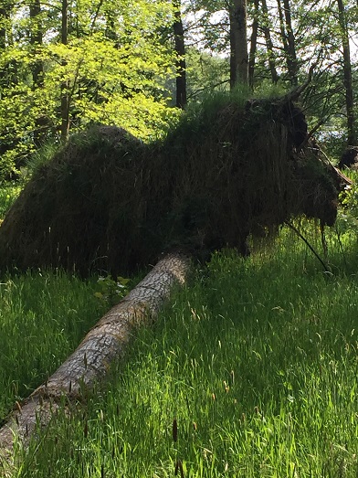 - Après le coup de vent d'il y a quelques mois des peupliers ont été couchés à Champvallier à Yzeure, ils sont restés là avec la poussée de l'herbe on vient même de voir arriver..... sans doute un bison.. le cours du bois de peuplier est-il si bas......