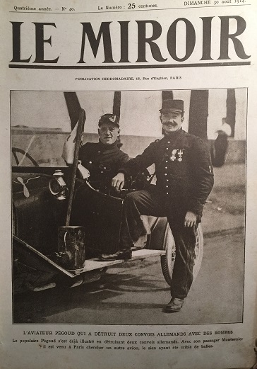 Alors qu’il se prépare, à la demande de Blériot, a réaliser une tournée promotionnelle aux Etats-Unis et au Canada Adolphe Pégoud est mobilisé. La France vient d’entrer dans la Première Guerre mondiale. Fort heureusement pour lui le cavalier sera aviateur. Affecté à la défense aérienne de Paris Adolphe Pégoud est un pilote acharné, passionné, et finalement un peu aventureux. Toujours aussi adulé il est le premier aviateur français à recevoir le 18 juillet 1915 le titre « d’as ».