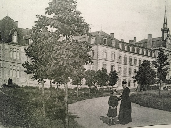 Faux château ? En effet, car malgré son aspect imposant, le bâtiment dit de Bellevue n'a jamais été conçu pour jouer stricto-sensu le rôle d'un château et fut dès sa construction (1882)un établissement religieux d'enseignement. Devenu Hôpital militaire (1914-1918) puis séminaire (1920-1927), centre d'accueil des réfugiés espagnols après la guerre civile (1939-1940), il avait été entre-temps, acheté par le Département de l'Allier. Il servit enfin de lycée entre 1941 et 1944, le lycée Banville étant occupé par les troupes allemandes. C'est donc après 1945 qu'il devint le Centre Administratif départemental qu'il est resté, accueillant au prix de nombreux aménagements et de quelques extensions ou constructions neuves, un pôle culturel attrayant dans un parc très apprécié. Il aurait pu devenir le siège du Conseil général après les lois de décentralisation. Mais le Préfet et le Président du Conseil général de l'époque ne voulurent pas couper le cordon ombilical avec la Préfecture. La décentralisation un peu mais pas trop !