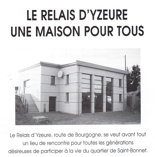 Cet aménagement, a permis la création d’une association dans le quartier de Saint-Bonnet, alors que la vie associative était très peu développée dans ce quartier. Cette réalisation permettra la création d’une nouvelle association « le Relai de Saint-Bonnet » qui deviendra très vite l’une des plus importantes associations d’Yzeure. Ce bâtiment a été conçu pour devenir un lieu ouvert ,à la fois sur le quartier et intérieurement.