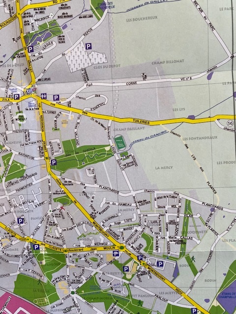 Si, au lieu de prendre le chemin de l'ancien golf, on tourne sur la droite rue de la Baigneuse ,on passe devant le collège François Villon pour arriver au parking des Jardins du Danube après avoir traversé la rue Bergeron -Vebret . On peut prendre l'allée de Gherla longue piste rectiligne qui nous conduit boulevard Louis Guillot à hauteur du stade de Champ-Daillant . Un autre chemin tout aussi carrossable tracée sur la droite mais plus sinueux conduit au même point.