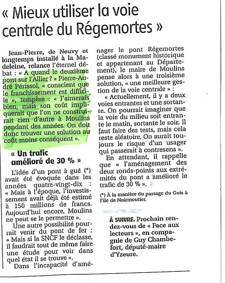" j'aimerais bien (le pont), mais son coût impliquerait que l'on ne fasse rien d'autre à Moulins pendant des années".