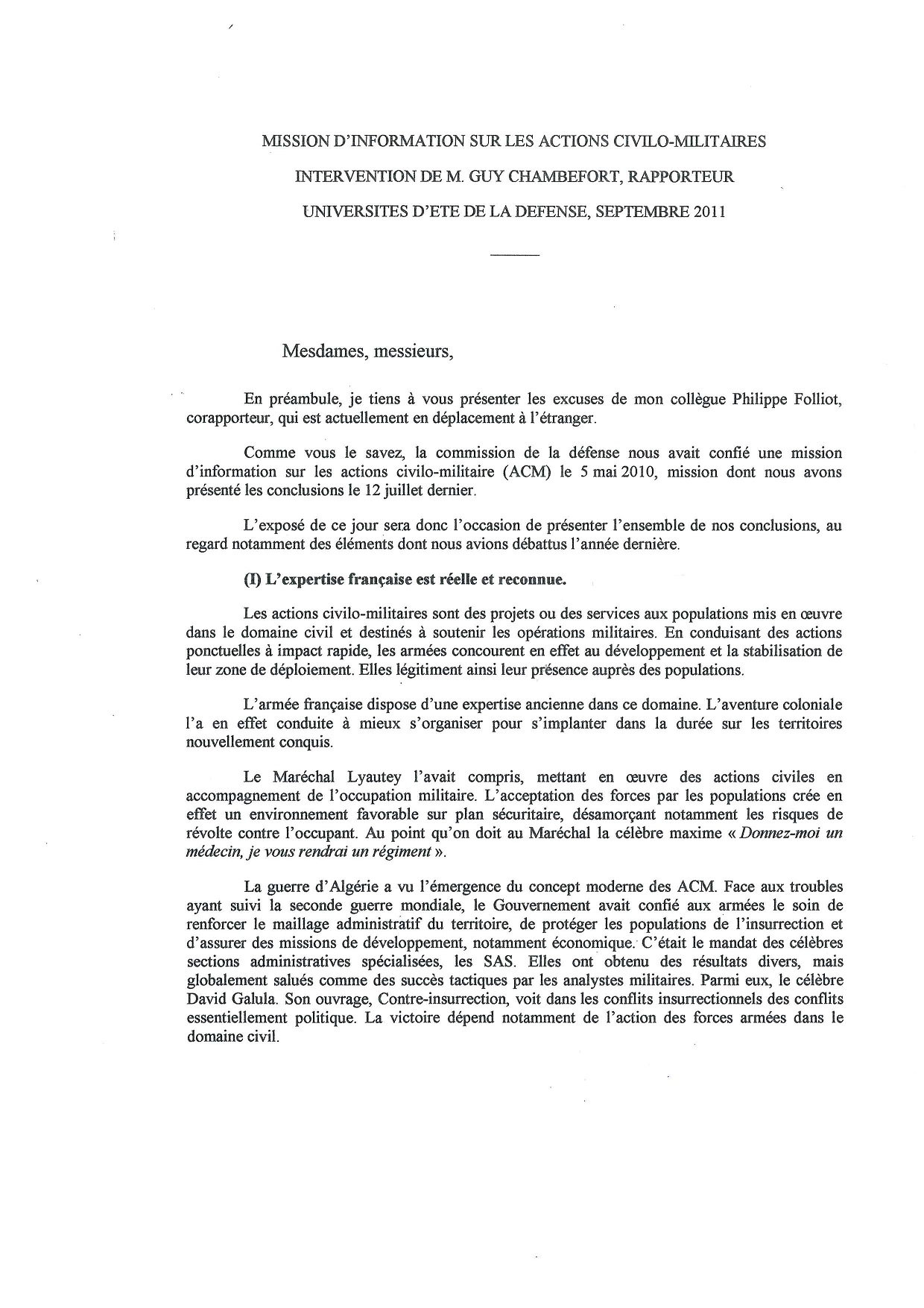 Le rapport été présenté à la commission puis à l'Assemblée Nationale. Pour votre information, je vous publie ci-dessous l'intervention que j'ai faite à ce sujet aux Universités d'été de la défense à Rennes en septembre 2011, ainsi que la liste des personnes auditionnées à Paris au Ministère de la Défense, au Ministère des affaires étrangères et européennes, des ONG, à Bruxelles auprès de l'Union Européenne et de l'OTAN, et enfin à Lyon. Nous vous présentons en annexes ces listes. Vous voudrez bien nous excuser de ne pas avoir fait de selfies avec ces personnalités !!!!!!!!!