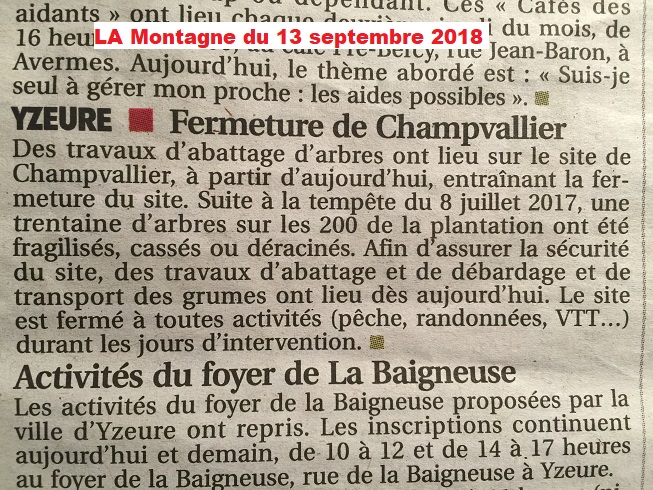 Le communiqué transmis à La Montagne laisse entendre qu'une trentaine d'arbres déracinés par la tempête seront abattus. Ce n'est pas du tout le cas ce sont 140 peupliers au moins, en bonne santé, qui ont été abattus sans que vous soyez informés sans que le Conseil Municipal délibère. Dans quel intérêt ?Il faut savoir que les 250m3 de bois correspondant aux arbres abattus environ 150 ont une valeur vénale globalement  de 7500 euros. C'est une faute que d'avoir détruit une telle allée lieu de promenade particulièrement appréciée des Yzeuriens.