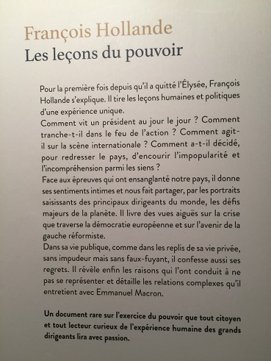 Jeudi 6 Septembre2018:François Hollande dédicacera son livre "Les leçons du pouvoir"(voir article)
