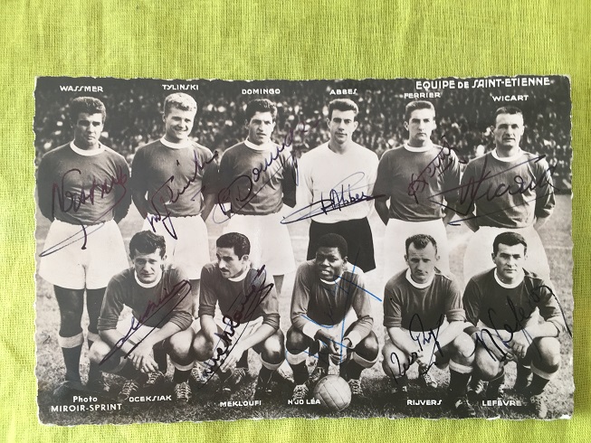 Il existe dans notre Département de nombreux supporters de l' AS Saint Etienne. Vous souvenez-vous de cette équipe qui a marqué les débuts de l'histoire du club. Cette carte postale rare éditée par Miroir Sprint, est dédicacée par tous les joueurs. En quelle année cette équipe composée de ces joueurs a participé au Championnat de France ? La réponse sera donnée dans quelques jours !