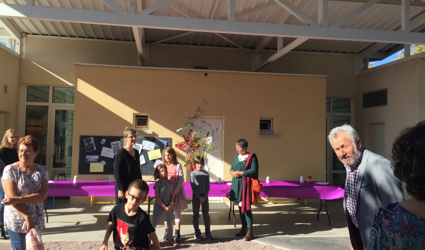 A l'initiative de Michel Lafaye, visite de la cour d'école rénovée par la commune avec une aide de la réserve parlementaire du Député de la Circonscription (2007-2017) pour un montant de 7 000 euros. Accueil chaleureux et sympathique, les enfants étaient très heureux de montrer également une fresque réalisée dans la cadre des TAP.