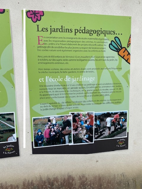 Depuis 2004, diverses actions autour du jardinage se sont mises en place à destination de tous les publics : école de jardinage, projets pédagogiques menés par les écoles, stages pour les adultes, fête des jardins etc. pour que chacun apprenne de l’autre. Le contenu de la réalisation Les jardins à la Prévert, lieu d’entraide à vocation sociale où chacun prend en considération les idées de l’autre, reposent sur l’idée de solidarité et de diversité. Ils sont faits par tous, et pour tous.