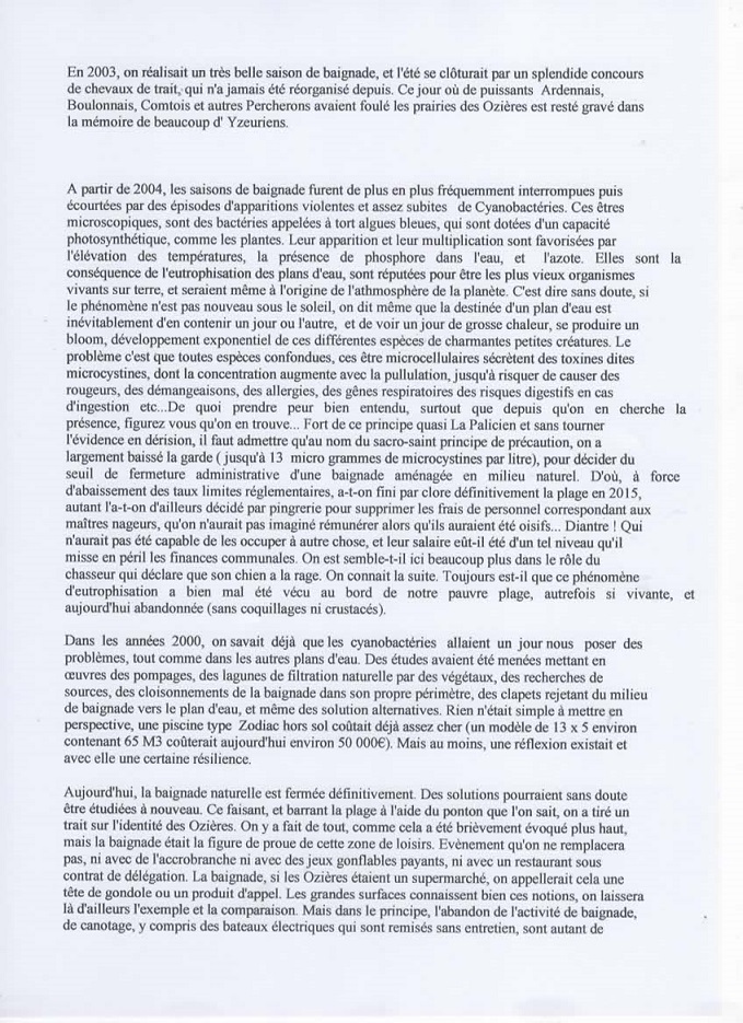 11: les habitants des Ozières et les associations qui y avaient leurs habitudes, remercient le maire d’avoir métamorphosé leur tranquillité en agitation et leur lieu de réunion en restaurant auquel on loue un bien communal à prix d’ami. On attend désormais les camping cars dans le quartier pour touristes privilégiés.