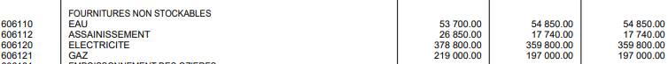 Des sommes inférieures ont été inscrites pour les consommations d'énergie en 2022 par rapport à 2021.