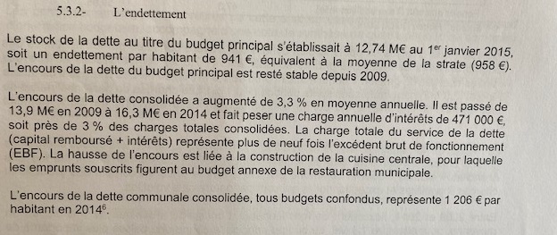 Vous aviez trouvé la dette trop importante en 2014-2015.