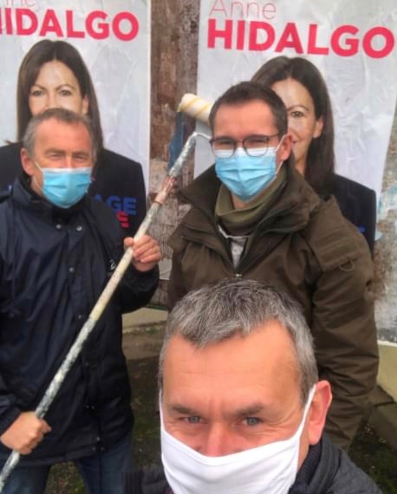 Nous avons été destinataires d'un selfie d'élus en pleine campagne jouant une scène du bal masqué de Verdi . Mais que font-ils c'est du théatre ? Le personnage principal la brave Anne est cachée par les colleurs . Elle a failli disparaitre complètement ,décidémment dans cette ville on met les femmes au second plan . Mais je crois que la meilleure ,c' est le camarade Bourgeot qui compte tenu de son expérience de colleur d' affiche colle avec le rouleau sur l' épaule sans regarder ce qu'il fait mais bon le rouleau est sur l' épaule gauche . Il sera pardonné. Pauvre Anne elle doit être un peu de travers. Ensuite nous espérons qu'ils sont partis à la recherche du mobilier,des livres, des portraits des grands socialistes qui ont disparu de l'ancien local du Parti socialiste à Moulins ? Dans quelques semaines nous irons à la recherche de tout cela.,nous attendons l'inventaire