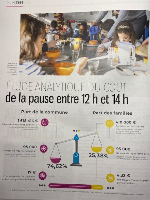 4,32 Prix moyen d'un repas payé par les familles à Yzeure .On est loin du repas à un euro le prix du repas réclamé par certains candidats lors des dernières élections dans les autres collectivités