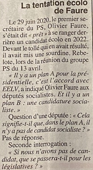 Les dérives du PS au niveau national:Le" canard enchaîné écrit le 28 avril 2021"