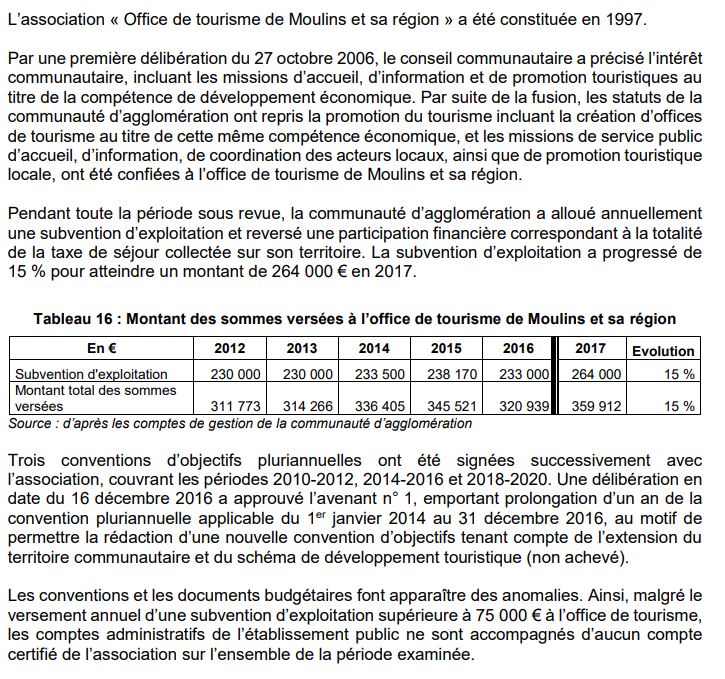 Ci-dessus le Rapport de la Chambre Régionale des Comptes concernant l'Office de Tourisme: