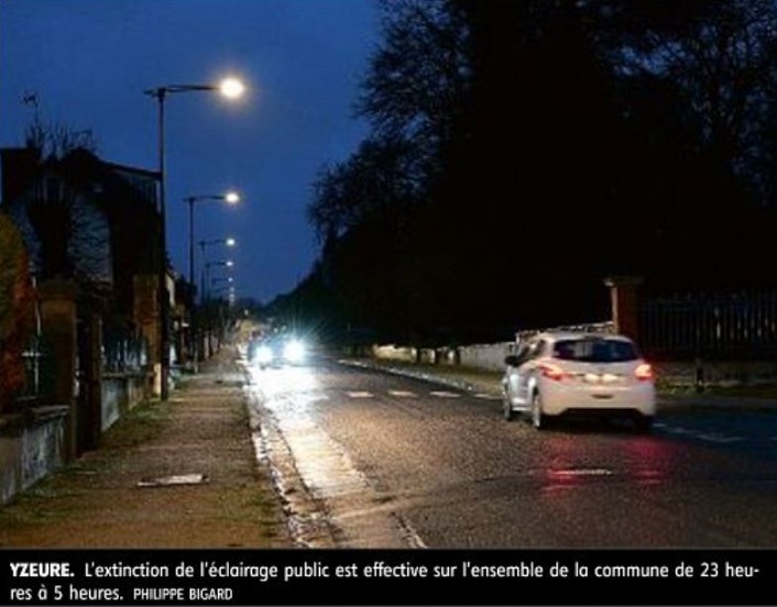 Il justifie l' extinction de l' éclairage public dans la ville d' Yzeure dans un article. Cet article est illustré par une photo de l'avenu Emile Zola éclairée!!!!! On se moque des citoyens .Avec la conseillère L.  Planche, pourtant défenseur invétérée  du service public  ils justifient  l' arrêt du service public de l'éclairage ,une des premières conquêtes sociales  assurant la sécurité de nos concitoyens .