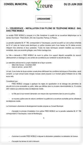 La société Free a déposé un dossier d'implantation .Tous les citoyens d' Yzeure aurait du être informés et pouvoir consulter ce dossier ,une réunion d'information aurait du être organisée .