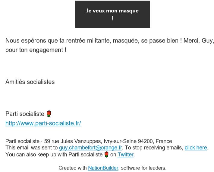 Comment vont-ils faire pour me reconnaitre avec un tel masque et demander mon exclusion ,après des remerciements pour mon engagement guy chambefort
