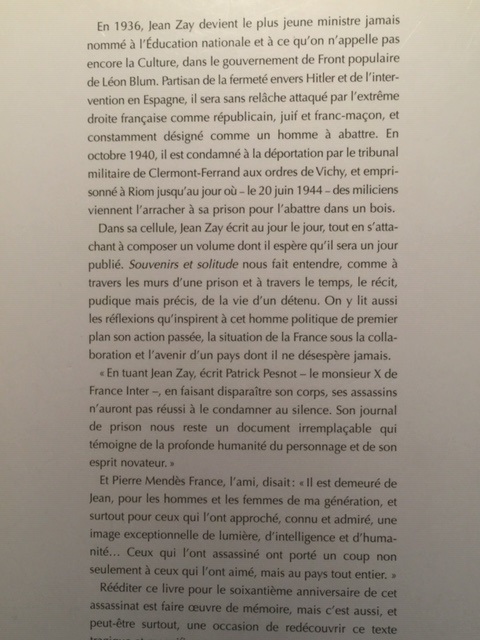 Jean Zay : Souvenirs et solitude.