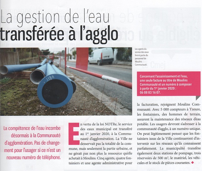 Pourquoi regrouper à Trévol les agents et matériels qui vont intervenir sur Yzeure entre autres ? Les véhicules, agents et matériels étaient positionnés à Yzeure, c'était pratique pour des interventions rapides. Ils vont maintenant se retrouver à 15 km. Les agents installés à Yzeure vont devoir se déplacer avec les frais que ça entraîne à Trévol. On ne peut pas dire que l'imagination soit au pouvoir. Je vous parie qu'on va louer des locaux chez un ami très bientôt pour garer les véhicules alors qu'il y avait des locaux à Yzeure. Nous reposerons de nombreuses questions sur les prix, les abonnements, les locations de compteurs……( à suivre). Allez vous payer une location de compteur sur un compteur qui vous appartient ?