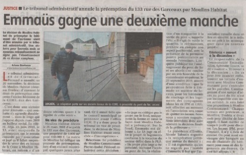 Non Moulins est bien soumise aux lois de La République. Le Bourbonnais n'est pas indépendant. Le Conseil municipal de Moulins devait délibérer pour transmettre son droit de préemption à Moulins Habitat qui ne pouvait le faire jouer qu'après. Non madame Tabutin, comme chaque fois, "vous parlez de récupération politique", c'est tout bêtement la loi. C'est pourtant ce qu'on doit apprendre dans les premières heures de cours de droit. A trop vouloir passer en force, on se prend parfois un coup sur la tête. Pourquoi la ville de Moulins n'a t-elle pas fait jouer directement son droit de préemption. Elle aurait pu donner le terrain pour les logements sociaux de l'opération, mais cela c'est très politique n'est-ce pas Madame Tabutin, vous n'envisagez pas de le faire. Quant à l'argument de PA Périssol indiquant que le TA juge le projet de logement conforme à la vocation du PLU. Le TA n'avait pas à se prononcer si le PLU le prévoyait depuis longtemps.