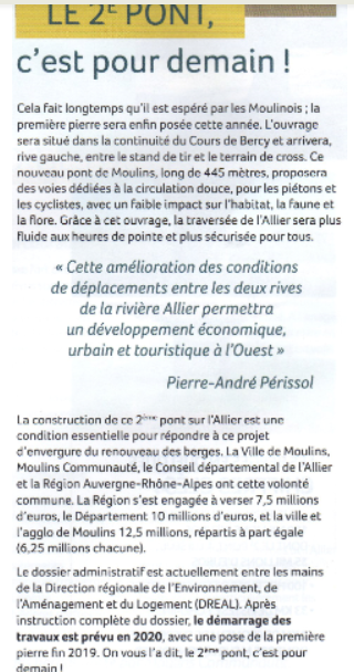 La commission d'enquête sur le deuxième pont. Nos articles que vous pourrez lire sur regards03 laissaient présager une telle issue. Mais pour certains la communication est prioritaire. L'ingénieur des Ponts était-il en accord avec le Maire de Moulins ? Cela reste à prouver. Pourquoi le Maire s'était-il converti au pont seulement en 2008 à l'approche des municipales ?