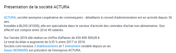 On nous parle d'une société Actura installé à BLOIS qui créerait 40 emplois. Un peu de curiosité.
