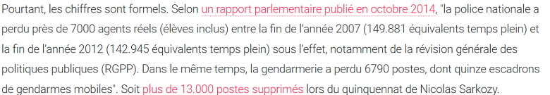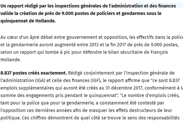 Alors rafraîchissons la mémoire de tout ce monde. A vos archives ! Qui a supprimé 13 000 postes de policiers et gendarmes entre 2007et 2012 ?