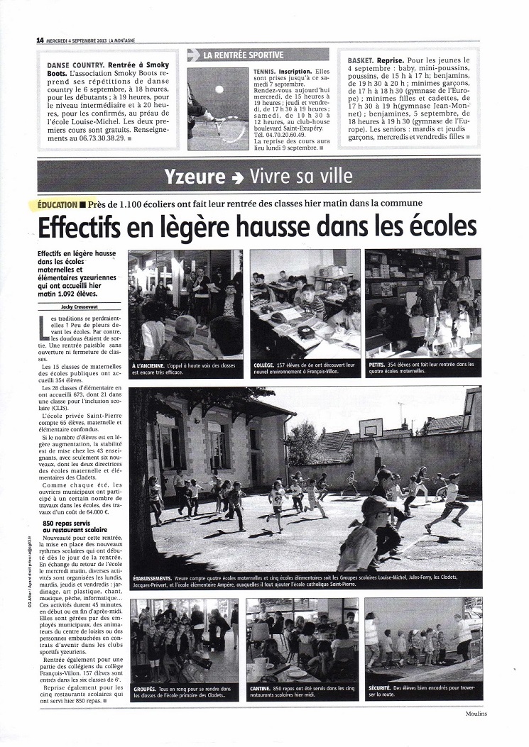 Yzeure : La rentrée en primaire en 2013